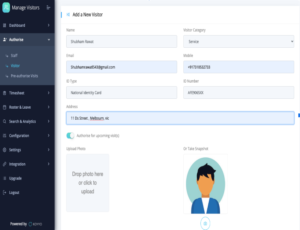 • The user has to provide information of the visitor like name, gmail, mobile number, and photo for privacy and security.